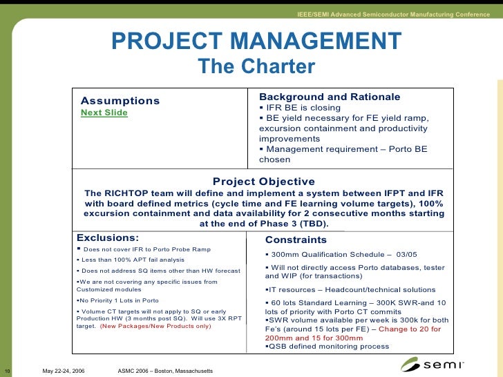 10. 10. PROJECT MANAGEMENT The Charter