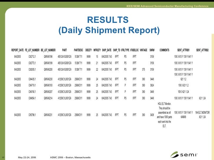 17. 17. RESULTS (Daily Shipment Report)