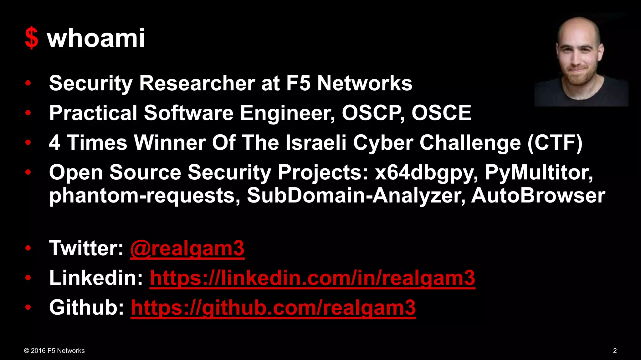 • My name is Tomer Zait and I'm a security researcher on F5 Networks.