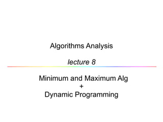 1. 1. Algorithms Analysis lecture 8 Minimum and Maximum Alg + Dynamic Programming