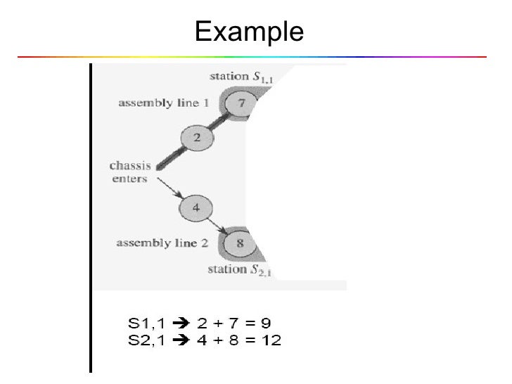 21. 21. Ex1:Assembly-line scheduling <ul><li>(Time between adjacent stations are nearly 0). </li></ul>