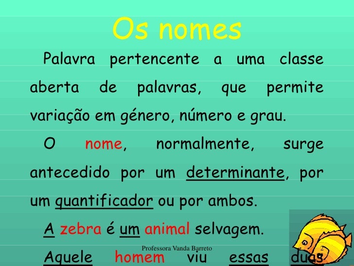 1. 1. Classe dos Nomes<br />Prof. Vanda Barreto<br />