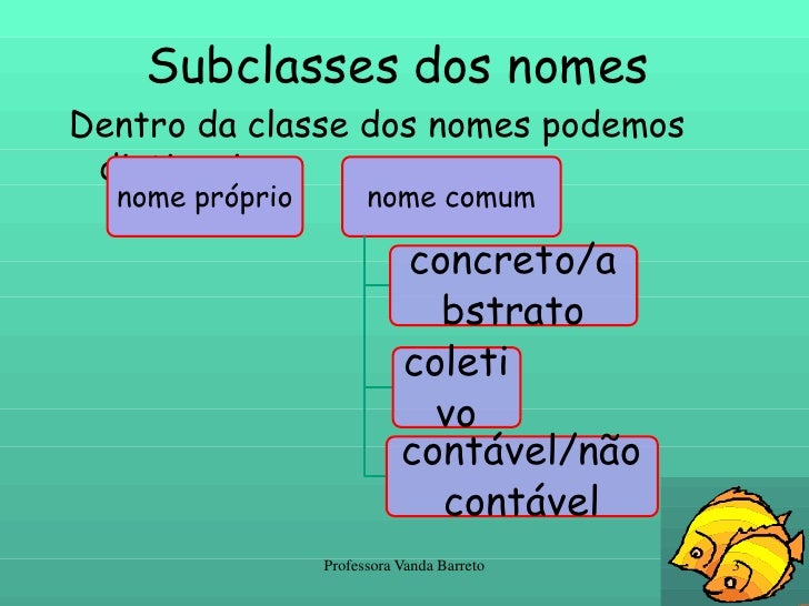 3. 3. Subclasses dos nomes<br />Dentro da classe dos nomes podemos distinguir:<br />3<br />Professora Vanda Barreto<br />