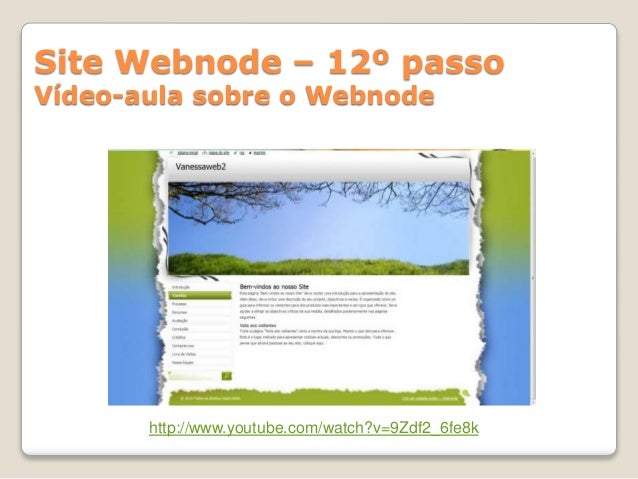 19. 19. http://www.youtube.com/watch?v=9Zdf2_6fe8k Site Webnode – 12º passo Vídeo-aula sobre o Webnode