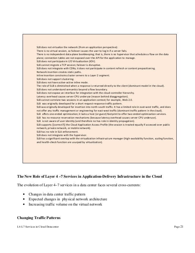 Cloud-computing applications are characterized by stateful access, with differentiated service levels, charged to the end user using the pay-per-use pricing model. Implicit in this model is the assumption that a cloud application is always on. Scaling the cloud delivery model to an Internet scale (millions of users) is a challenge that next-generation Layer 4–7 infrastructure needs to overcome.