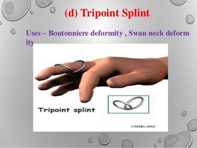 44. 44. (d) Tripoint Splint Uses – Boutonniere deformity , Swan neck deform ity