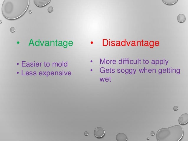 8. 8. • Advantage • Disadvantage • Easier to mold • Less expensive • More difficult to apply • Gets soggy when getting wet