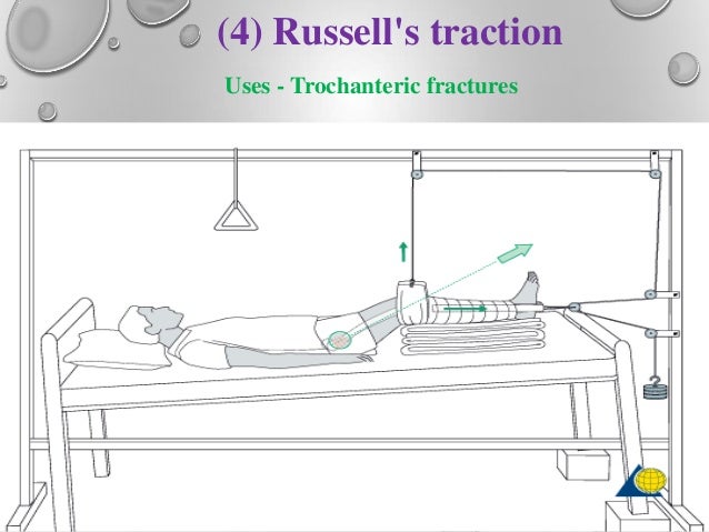 89. 89. (4) Russell's traction Uses - Trochanteric fractures