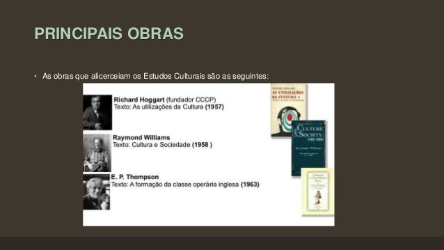 6. 6. PRINCIPAIS OBRAS • As obras que alicerceiam os Estudos Culturais são as seguintes: