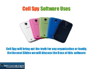 Cell Spy Software track all the activity of the targeted cell phone. it is compatible with all type of smartphone . It can can track GPS location, SMS, call Logs, Phone Book, Internet browsing and many more.