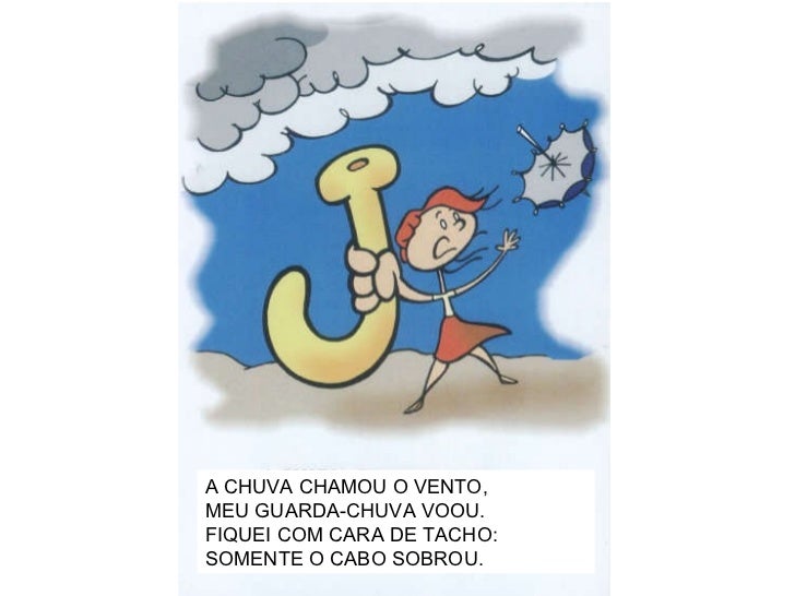 10. 11. A CHUVA CHAMOU O VENTO, MEU GUARDA-CHUVA VOOU. FIQUEI COM CARA DE TACHO: SOMENTE O CABO SOBROU.