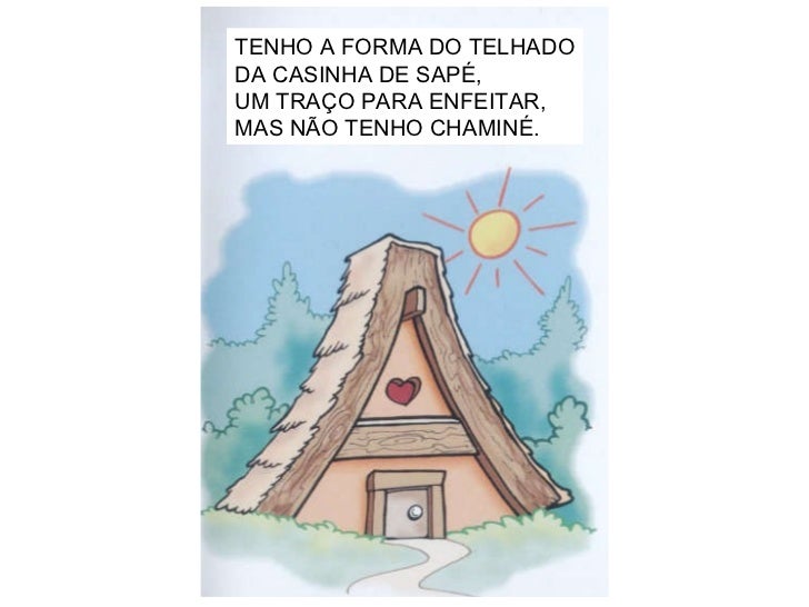 1. 2. TENHO A FORMA DO TELHADO DA CASINHA DE SAPÉ, UM TRAÇO PARA ENFEITAR, MAS NÃO TENHO CHAMINÉ.