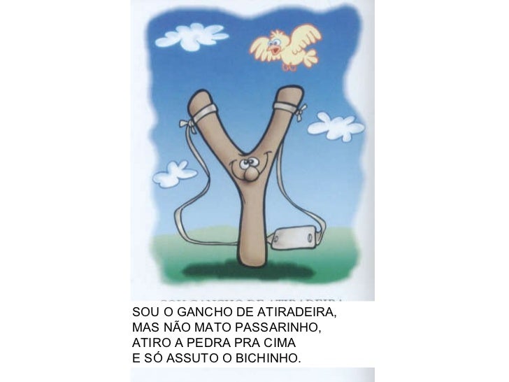 24. 25. SOU O GANCHO DE ATIRADEIRA, MAS NÃO MATO PASSARINHO, ATIRO A PEDRA PRA CIMA E SÓ ASSUTO O BICHINHO.