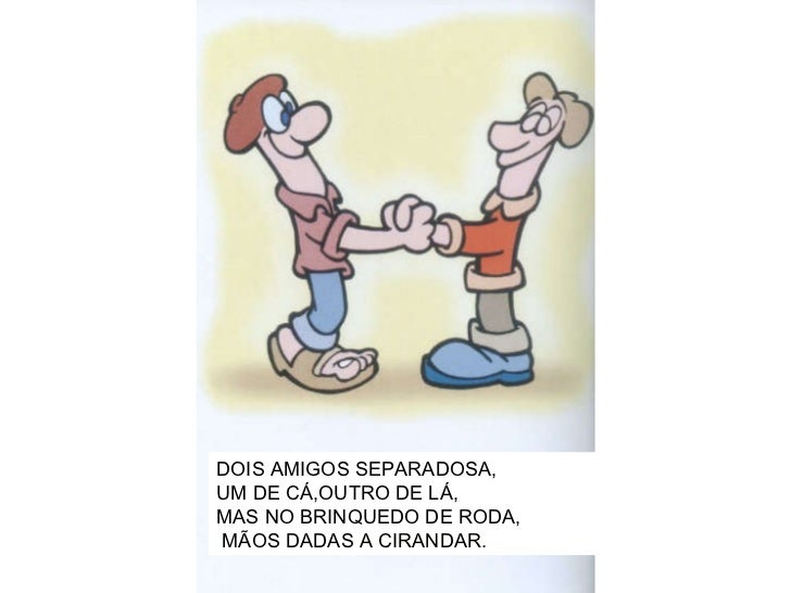 8. 9. DOIS AMIGOS SEPARADOSA, UM DE CÁ,OUTRO DE LÁ, MAS NO BRINQUEDO DE RODA, MÃOS DADAS A CIRANDAR.