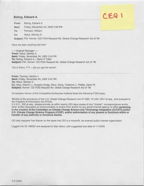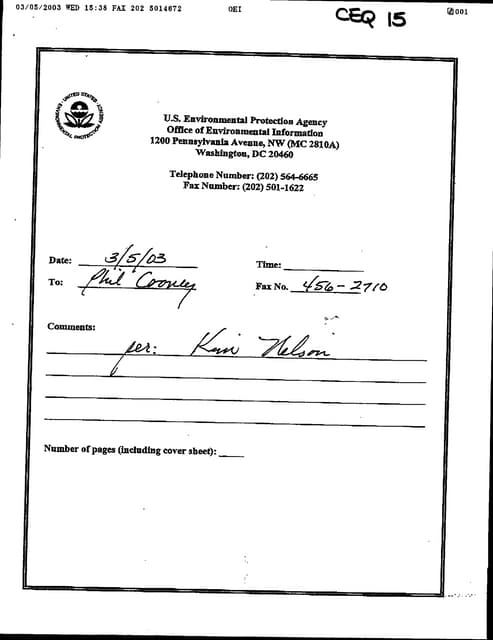 FOIA Requests should be submitted by fax at (202) 456-0753 or E-Mail to eboling@ceq.eop.gov