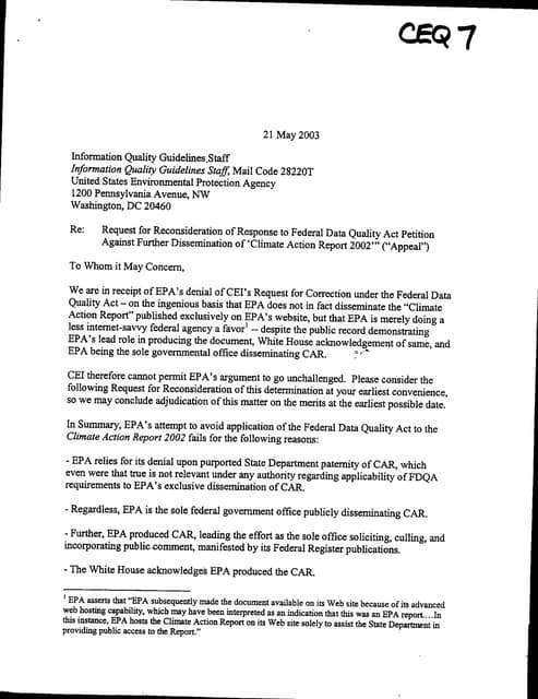 1. Council on Environmental Quality (CEQ),