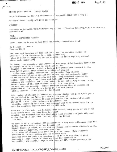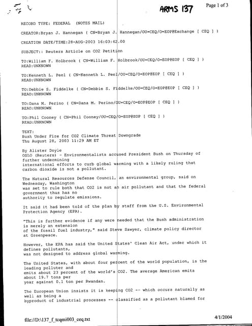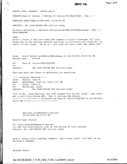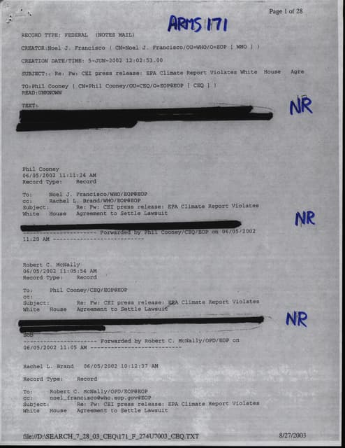 Perhaps the most important posting to CEQ’s Online Reading Room are the documents (in .pdf format)