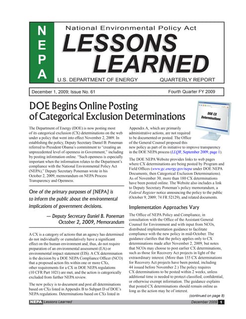 that provides an explanation of NEPA, how it is implemented, and how