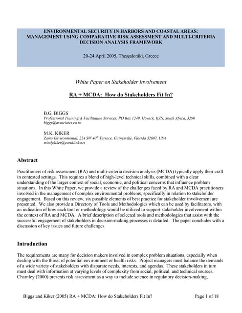 yet made their interests known. Conflicts may be exacerbated by poor communication,