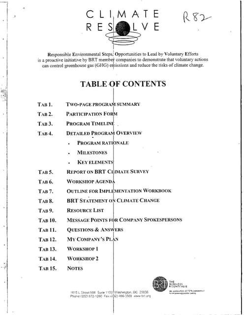 TABLE OF CONTENTS FOR COMPREHENSIVE ENVIRON-