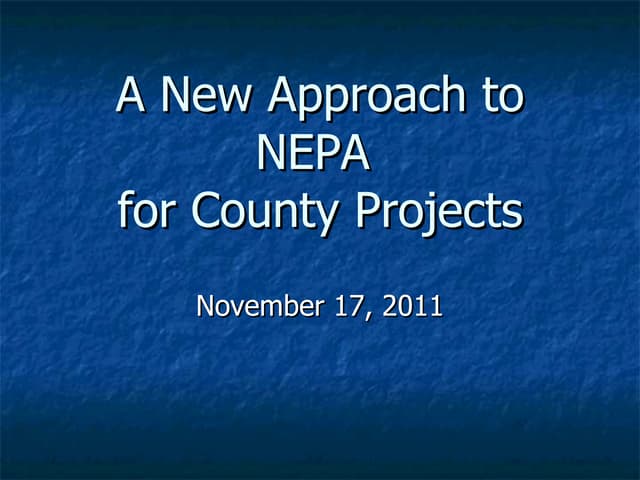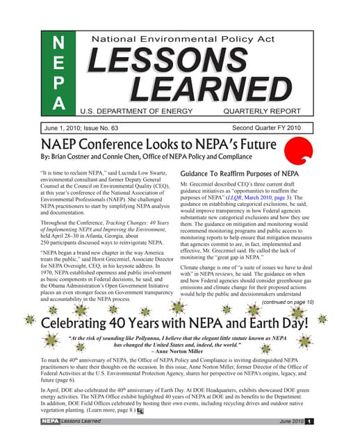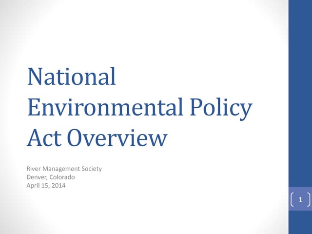 Environmental Policy Act (NEPA). It introduces the NEPA practitioner and other interested parties to