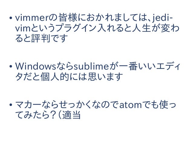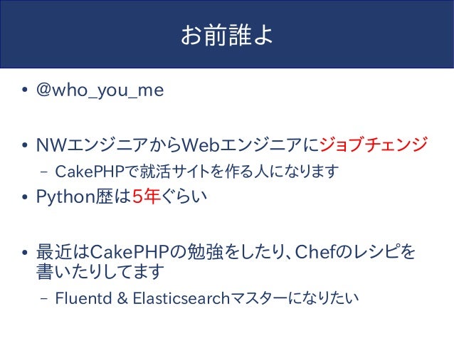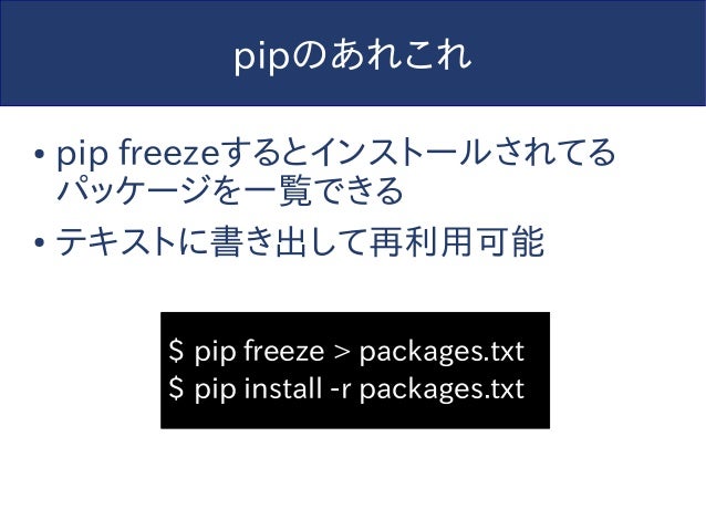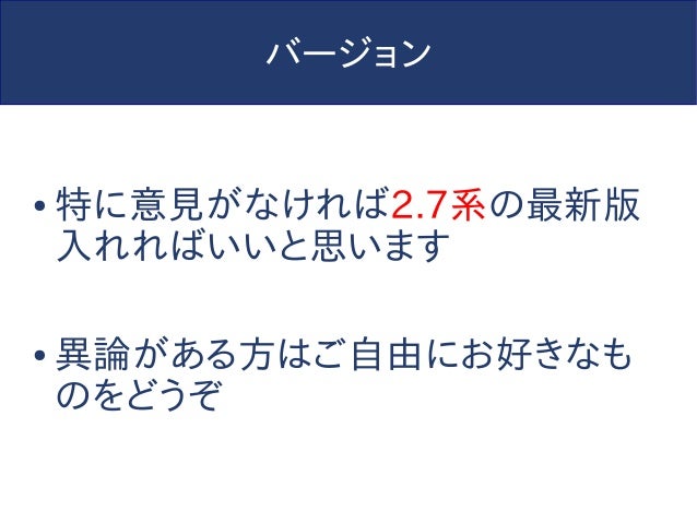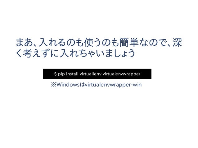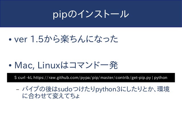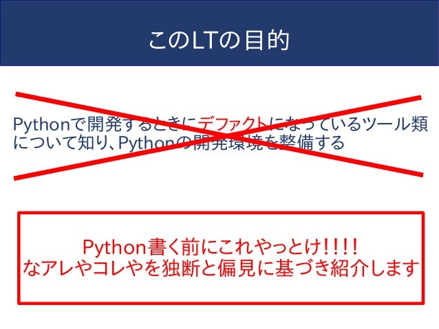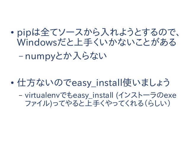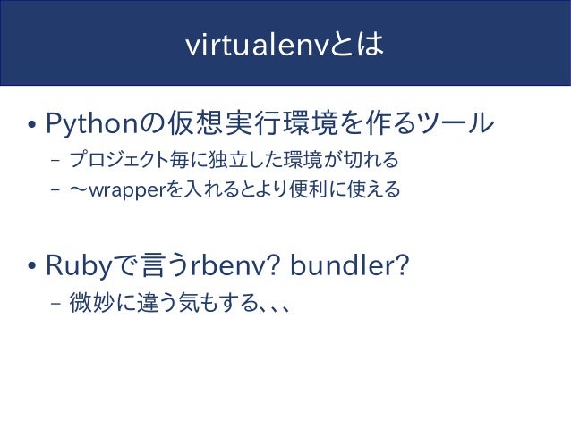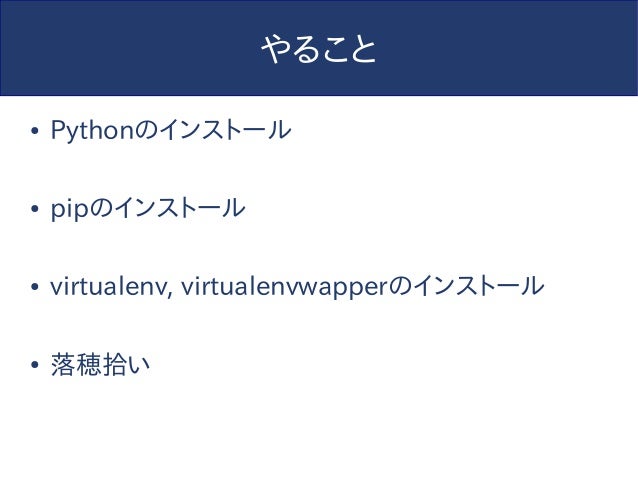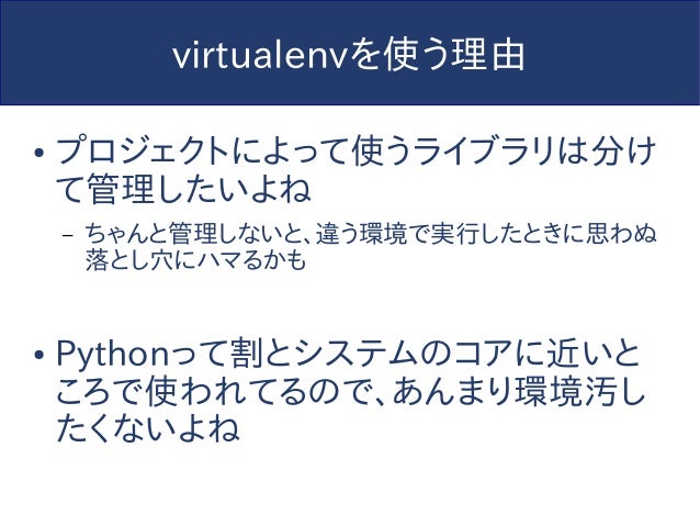 【追記】このスライドは2014年に作られたものであり、内容については現在では歴史的意義以外の価値はありません。今からPython始めるならPython3でvenv使わないと怖い人たちに殴られるのでそうしましょう。