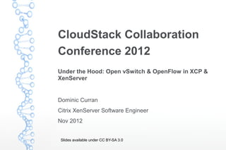 1. 1. CloudStack CollaborationConference 2012Under the Hood: Open vSwitch & OpenFlow in XCP &XenServerDominic CurranCitrix XenServer Software EngineerNov 2012 Slides available under CC BY-SA 3.0
