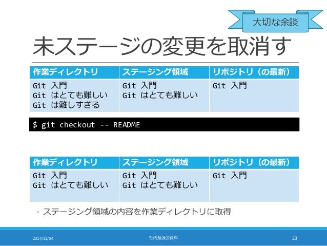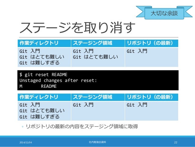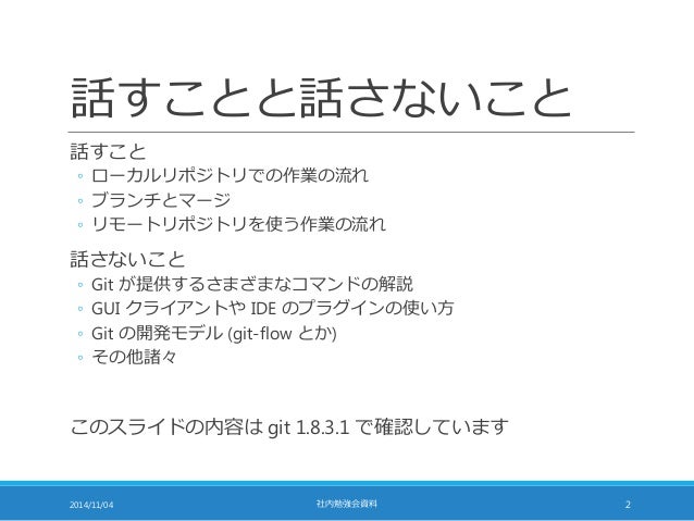 勤務先の社内勉強会での発表資料です。Git の初心者向けに基本的な使い方を説明したものです。Linux のコマンドラインインタフェースでの操作を前提とした説明になっているので、Linux には慣れている人を対象として想定しています。