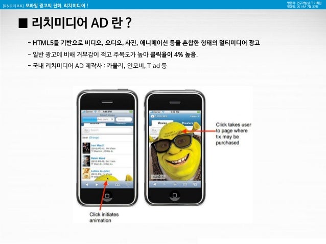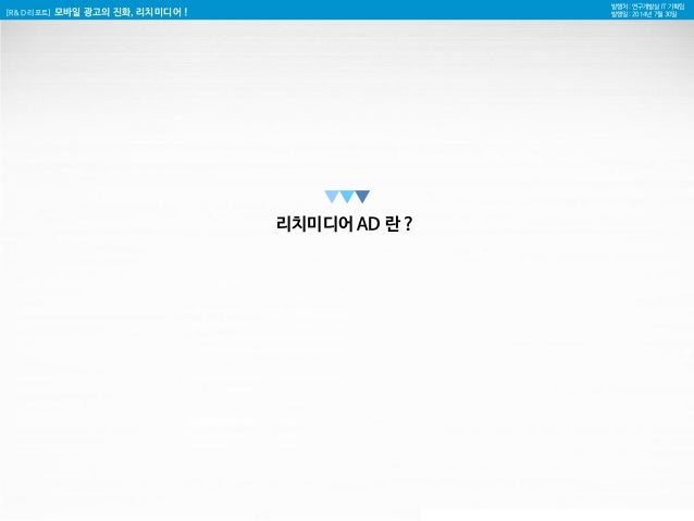 1. 1. [R&D 리포트] 모바일 광고의 진화, 리치미디어 ! 발행처 : 연구개발실 IT 기획팀 발행일 : 2014년 7월 30일 모바일 광고의 진화, 리치미디어 (rich media) 연구개발실 IT 기획팀