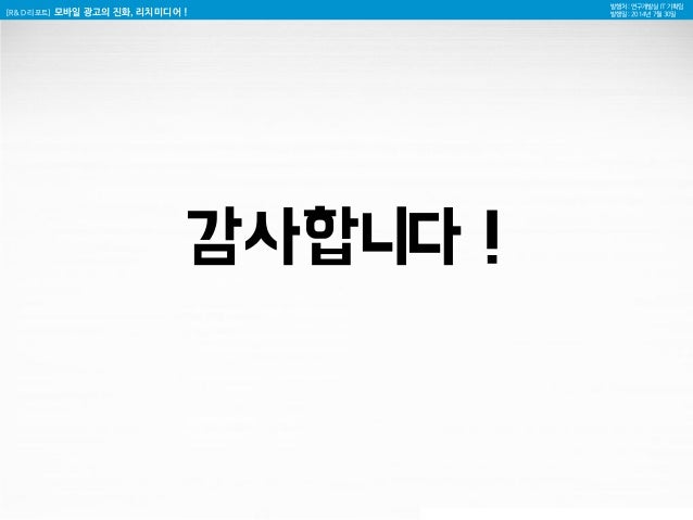 30. 30. [R&D 리포트] 모바일 광고의 진화, 리치미디어 ! 발행처 : 연구개발실 IT 기획팀 발행일 : 2014년 7월 30일 감사합니다 !